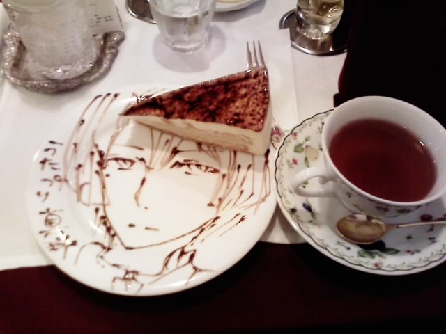 メイドカフェに。ケーキに絵をかいてくれた。